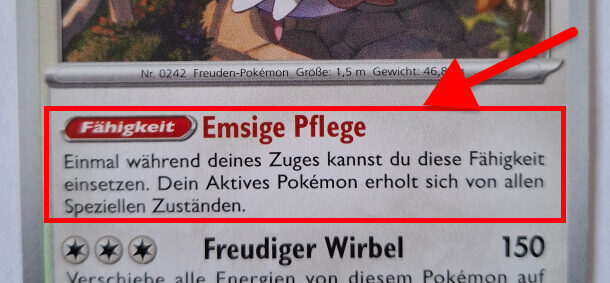 Diese Karten haben besondere Attacken und Regeln, wie hier z. B.