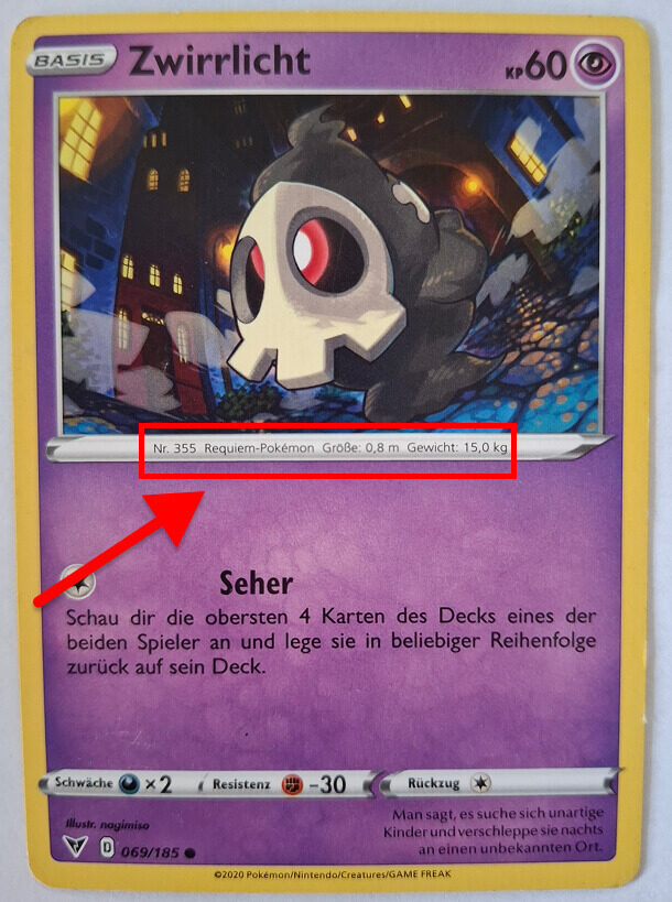 Hier findest du Eigenschaften zu deinem Pokémon. Zwirrlicht hat die Nummer 355. Damit ist es ein Pokémon der 3. Generation, die 2002 veröffentlicht wurden. In unserem Ratgeber „Die Grundlagen des Pokémon-Sammelkartenspiels: Der beste Einstieg für Anfänger“ findest du eine Übersicht über die bisher erschienenen Generationen.