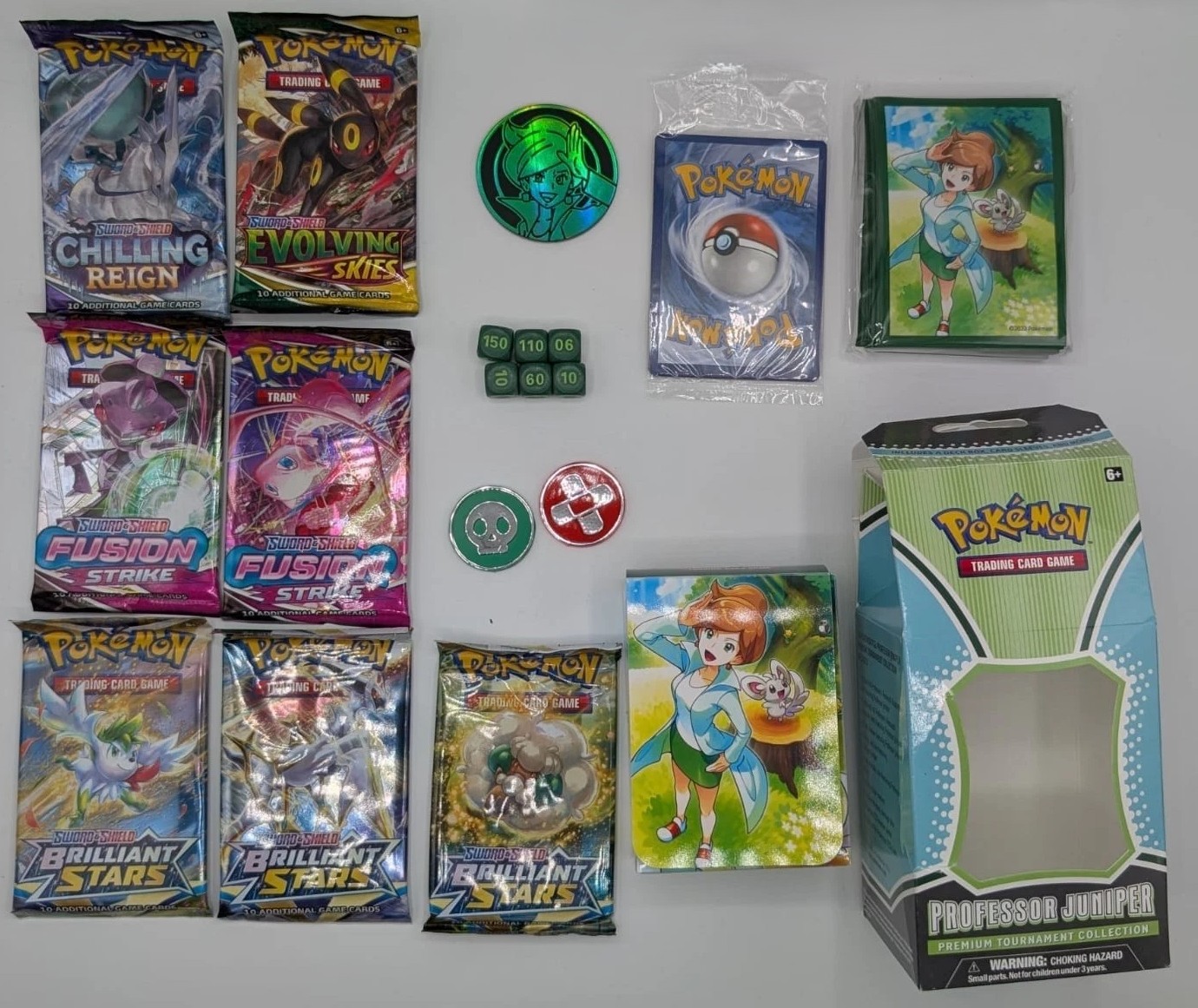 - 7 Boosterpacks des Pokémon-Sammelkartenspiels unter anderem Evolving Skies und Fusion Strike