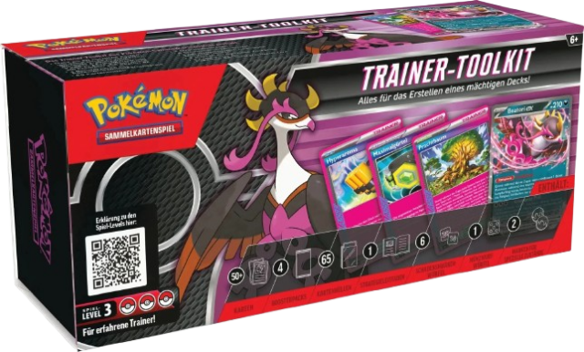 Verwandle deine Kartensammlung in spielbare, unterhaltsame und wettbewerbsfähige Decks des Pokémon-Sammelkartenspiels! Diese Kollektion enthält eine Fülle von Trainerkarten, darunter ASS-KLASSE-Karten und einen Strategieleitfaden, der dir hilft, deine Karten zu kombinieren und ein Deck zu erstellen, das deine besten Pokémon hervorhebt! Du findest alles, was du brauchst, um die Entscheidungen zu treffen, denen sich jeder Deckentwickler stellen muss: Mehr mächtige Pokémon? Strategischere Trainerkarten? Wie viel Energie ist zu viel? Schlage mit dem Trainer-Toolkit des Pokémon-Sammelkartenspiels einen Kurs ein, der völlig neue Decks, originelle Combos und jede Menge Spaß bei spannenden Spielen verspricht!